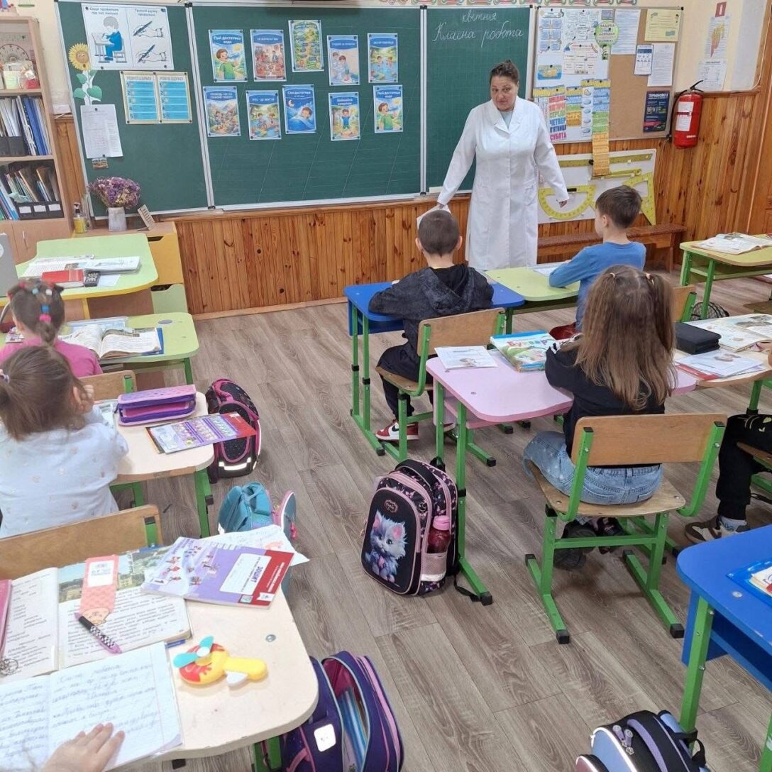 До Всесвітнього дня здоров’я наша медсестра Надія Сидоренко провела з учнями бесіду «Здоров’я понад усе».